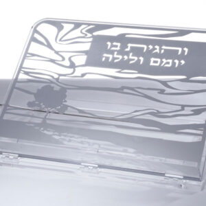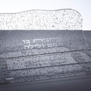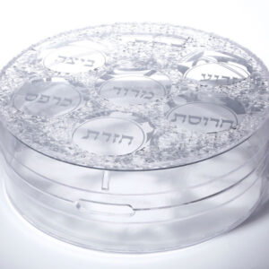קערת ליל הסדר + מדפי מצות אקריליק גלים הדפס כסף