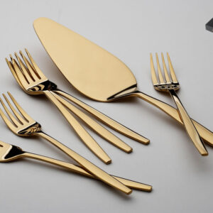 סט כף עוגה +6 מזלגות דגם Gentle נירוסטה 18/10 זהב מבריק