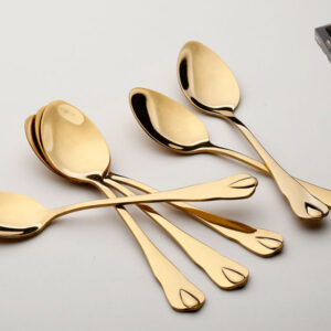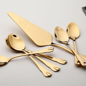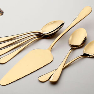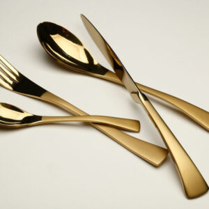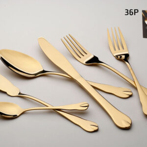 סט סכו”ם נירוסטה 24 חלקים שחור זהב אל חלד בגודל 6 סועדים בצבע זהב