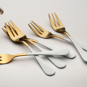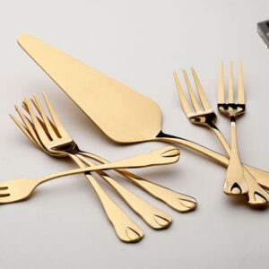 סט 6 מזלגות קינוח + כף עוגה נירוסטה זהב מט ידיות שחור