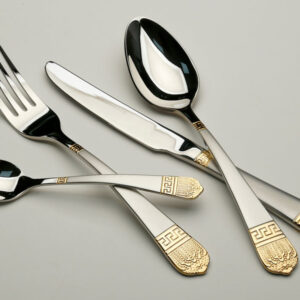 סט סכו”ם 24 חלקים זהב אל חלד בגודל 6 סועדים בצבע זהב