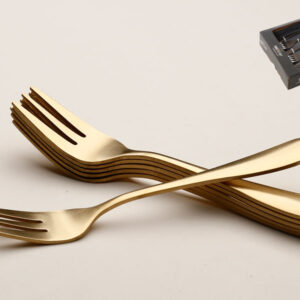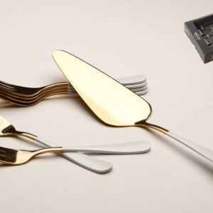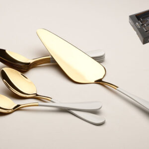 סט 6 מזלגות קינוח + כף עוגה נירוסטה זהב ידיות לבן מט