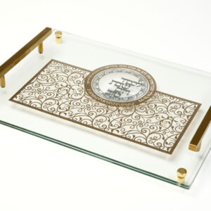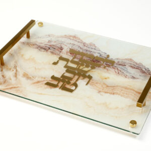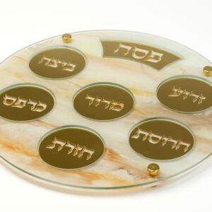 קערת ליל הסדר אקריליק גוון שיש עם ריקועי מתכת זהב