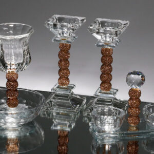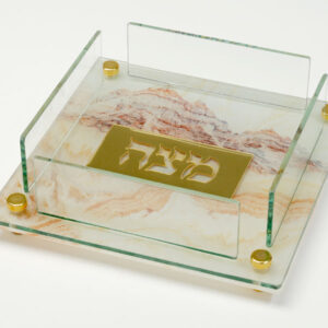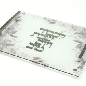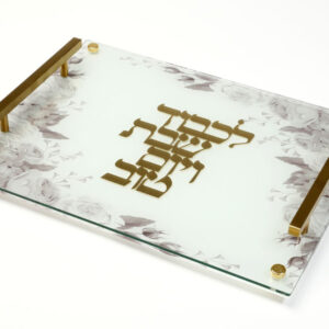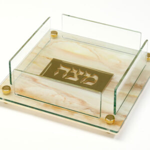קערת ליל הסדר אקריליק גוון שיש עם ריקועי מתכת כסף