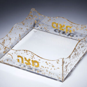 קערת ליל הסדר + מדפי מצות אקריליק קונפטי והדפס זהב