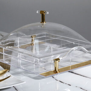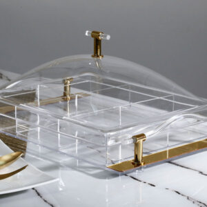 קברט מרובע + מכסה אקריליק 4 תאים פסי זהב