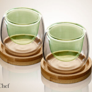 זוג כוסות קפה זכוכית ירוקה DreamChef עם תחתיות עץ