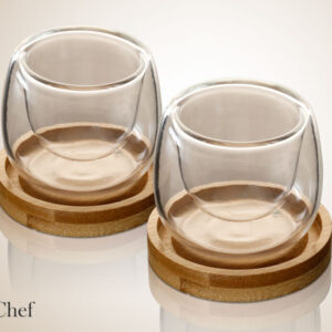 זוג כוסות קפה זכוכית אמבר DreamChef עם תחתיות עץ
