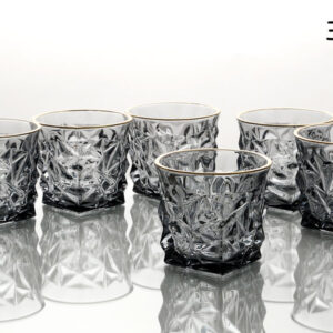 סט 6 כוסות וויסקי 350 מ”ל CRYSTALINE שחור פס זהב