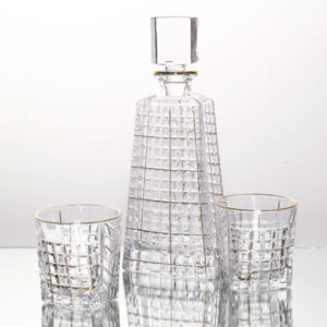 סט וויסקי 6 כוסות 360 מ”ל ודקנטר 850 מ”ל CRYSTANLINE פס זהב