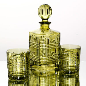 סט וויסקי 6 כוסות 340 מ”ל ודקנטר 800 מ”ל CRYSTANLINE ירוק