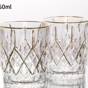 סט 6 כוסות וויסקי 350 מ”ל CRYSTALINE שחור פס זהב
