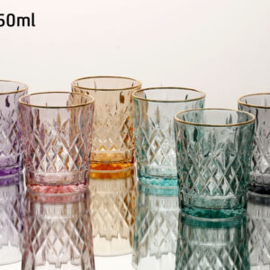 סט 6 כוסות וויסקי 350 מ”ל CRYSTALINE צבעוני פס זהב