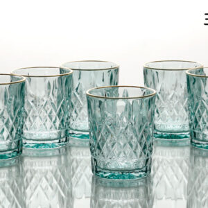 סט 6 כוסות וויסקי 350 מ”ל CRYSTALINE טורקיז פס זהב