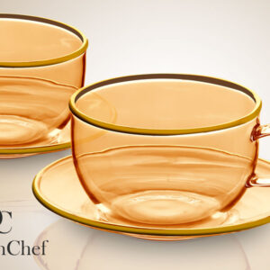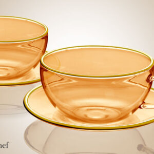 זוג ספלי תה DreamChef זכוכית אמבר פס זהב + תחתית זכוכית