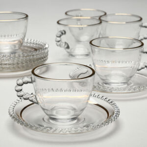 סט ספלי קפה זכוכית פס זהב