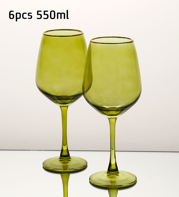 סט 6 גביעי יין 550 מ”ל GREEN GOLD CRYSTALINEE