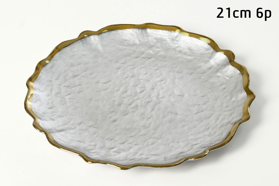 צלחת מנה ראשונה 21 ס”מ כסוף פס זהב