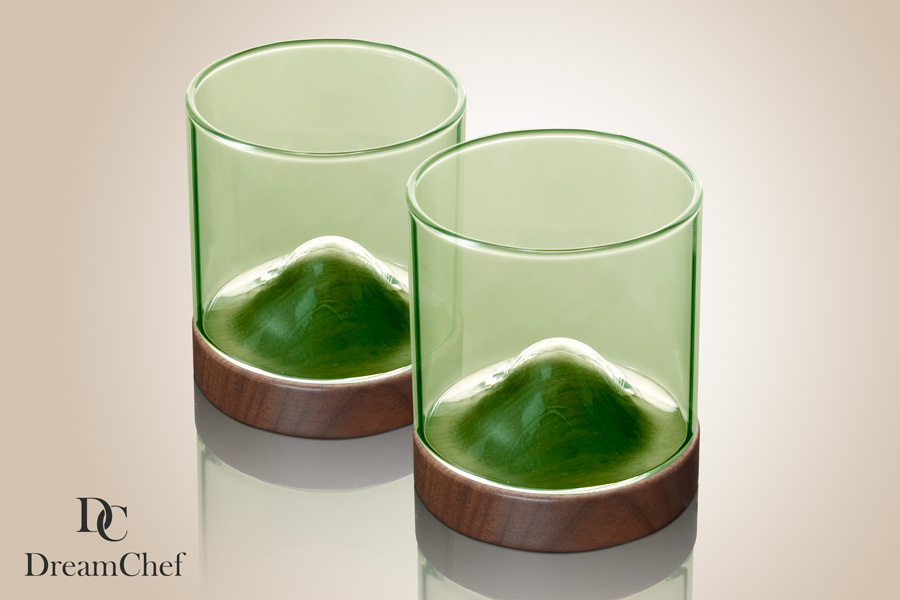 זוג כוסות זכוכית ירוקה לשתייה חמה DreamChef עם תחתית עץ