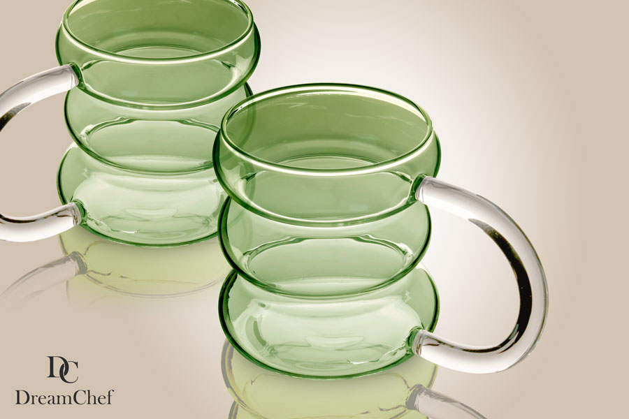 זוג כוסות זכוכית ירוקה DreamChef לשתייה חמה