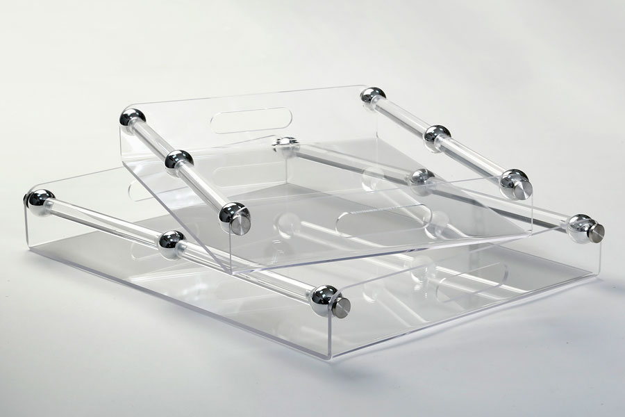 זוג מגשי אקריליק כדורי כסף