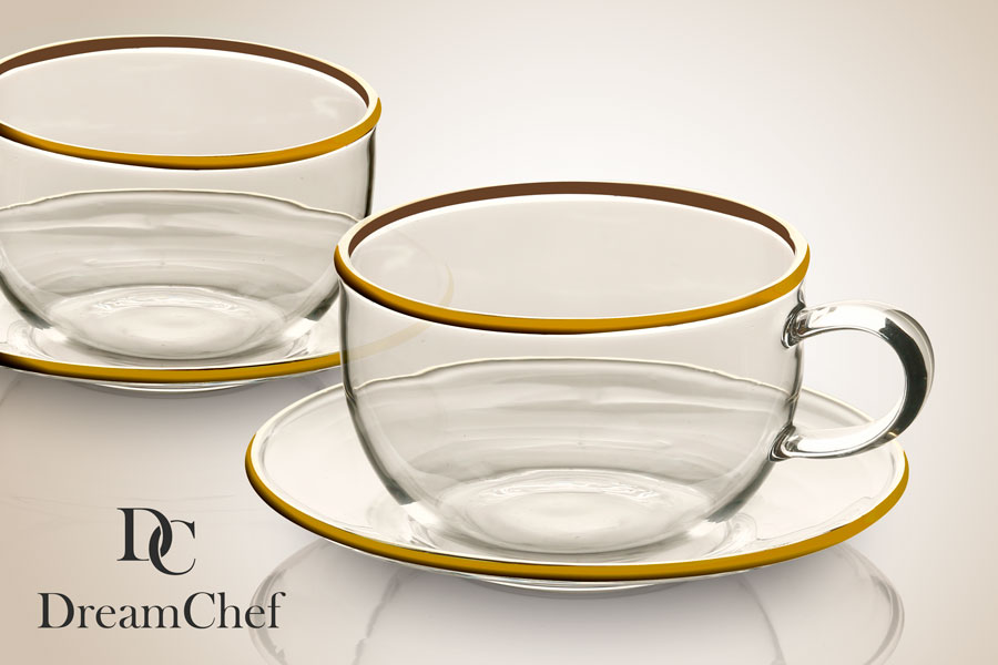 זוג ספלי קפה DreamChef זכוכית פס זהב + תחתית זכוכית
