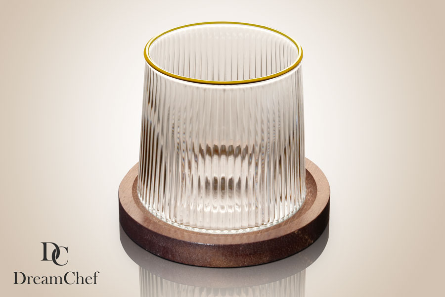 כוס זכוכית פס זהב לשתייה חמה DreamChef עם תחתית עץ