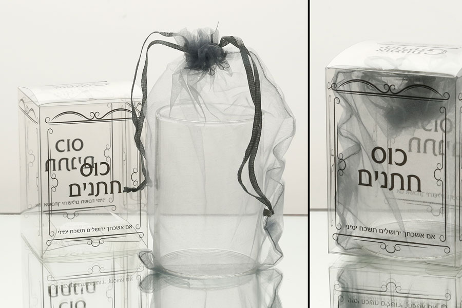 כוס חתנים 6X6X8.5 ס”מ בשקית רשת כסף