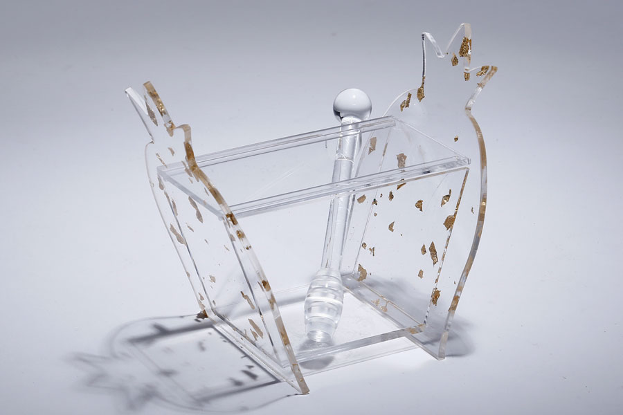 קופסת מצות אקריליק שוכבת פס מתכת זהב
