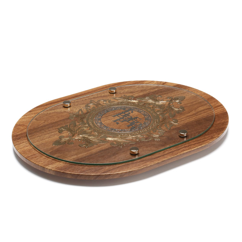 מגש לכבוד שבת עץ + זכוכית וריקוע מתכת