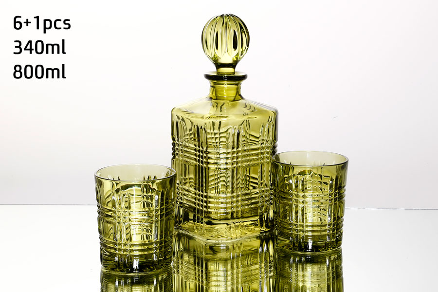 סט וויסקי 6 כוסות 340 מ”ל ודקנטר 800 מ”ל CRYSTANLINE ירוק