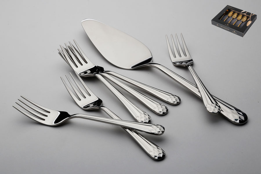 סט כף עוגה +6 מזלגות דגם Hive נירוסטה 18/10 מבריק
