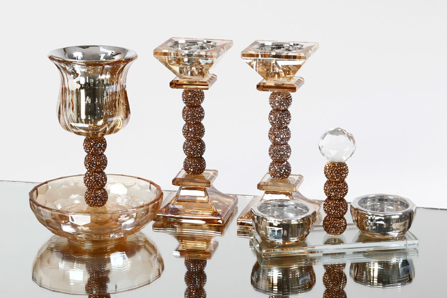 סט שבת זוג פמוטים מלחייה וגביע קידוש קריסטל