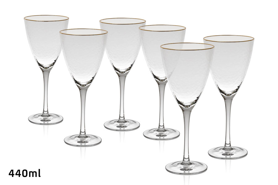 סט 6 גביעי יין קריסטל פס זהב
