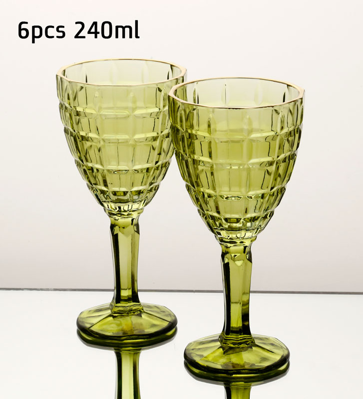 סט 6 גביעי יין 240 מ”ל GREEN GOLD CRYSTALINE