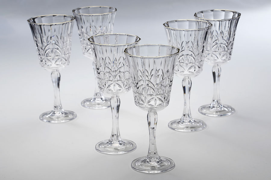 סט 6 גביעי יין 300ml פוליקרבונט שקוף פס זהב