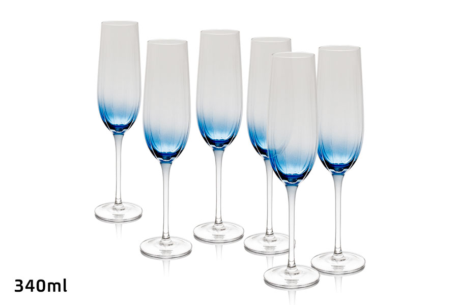 סט 6 גביעי שמפניה קריסטל כחול