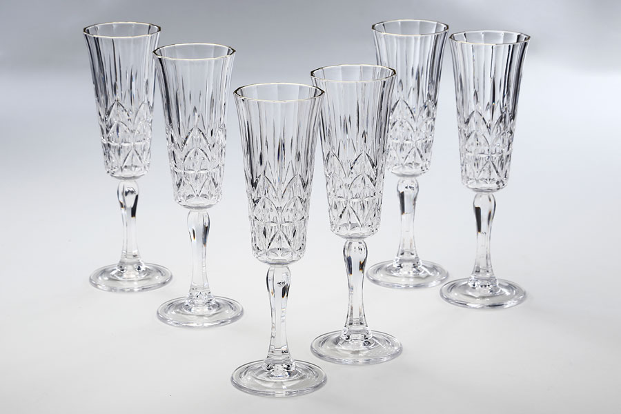 סט 6 גביעי שמפניה 180ml פוליקרבונט שקוף פס זהב