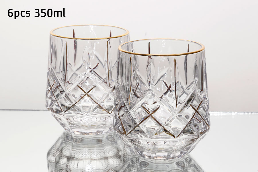 סט 6 כוסות וויסקי 350 מ”ל CRYSTALIN פס זהב