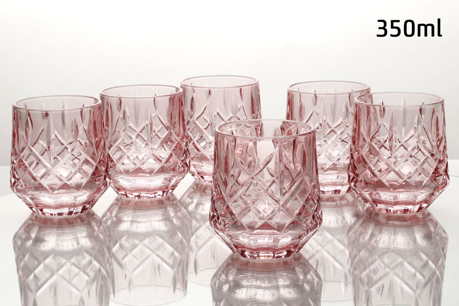 סט 6 כוסות וויסקי 350 מ”ל CRYSTALINE ורוד פס זהב