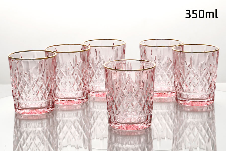 סט 6 כוסות וויסקי 350 מ”ל CRYSTALINE ורוד פס זהב