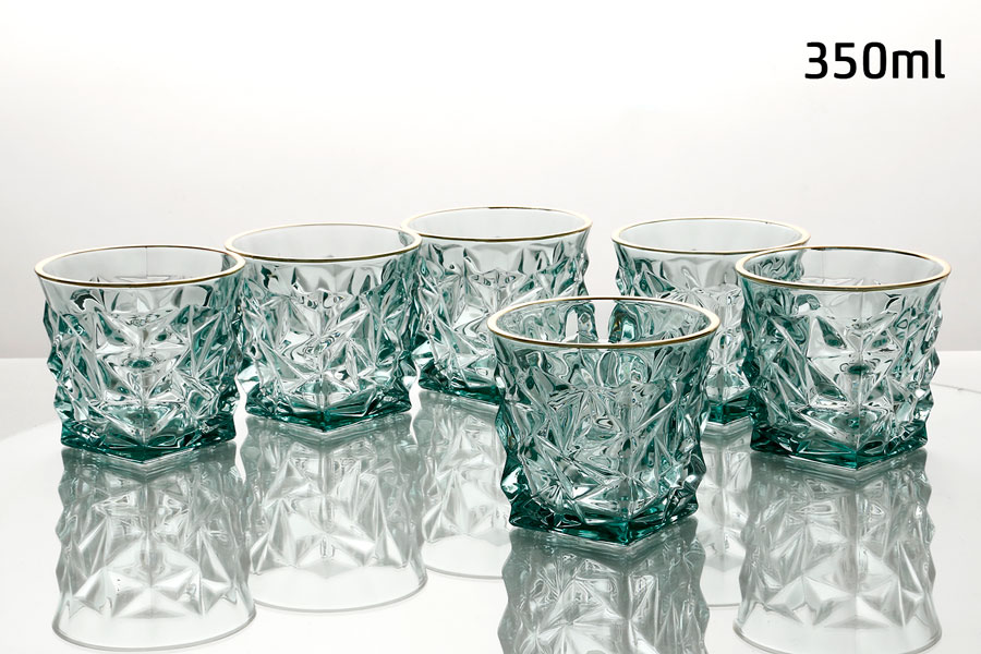 סט 6 כוסות וויסקי 350 מ”ל CRYSTALINE ירוק פס זהב