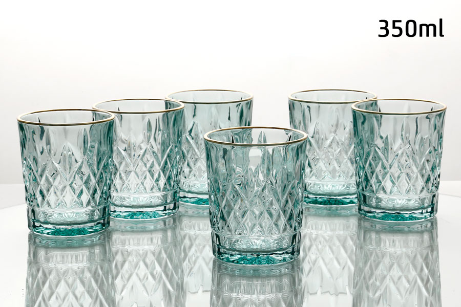 סט 6 כוסות וויסקי 350 מ”ל CRYSTALINE ירוק פס זהב