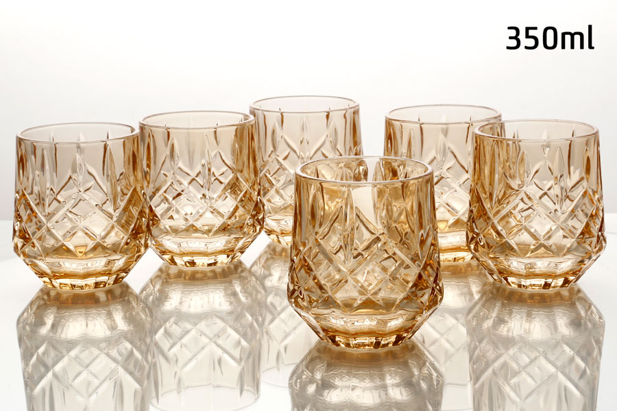 סט 6 כוסות וויסקי 350 מ”ל CRYSTALINE כתום פס זהב