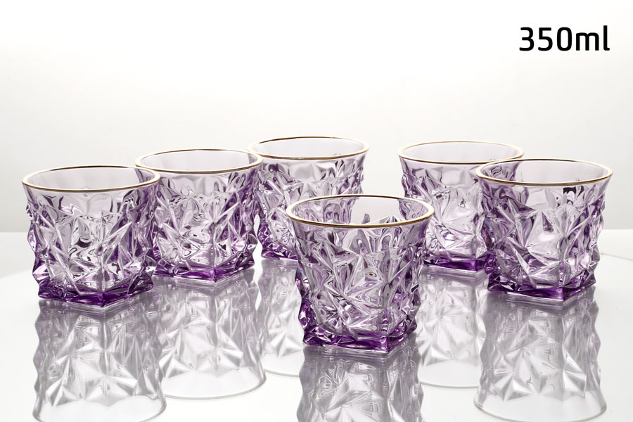 סט 6 כוסות וויסקי 350 מ”ל CRYSTALINE סגול פס זהב