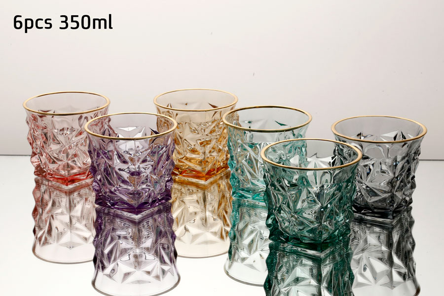 סט 6 כוסות וויסקי 350 מ”ל CRYSTALINE צבעוני פס זהב