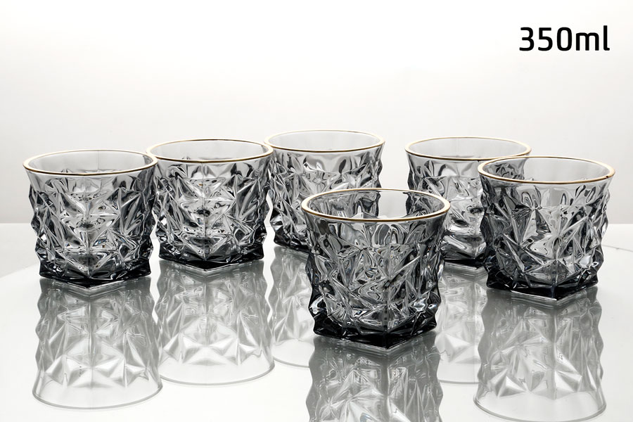 סט 6 כוסות וויסקי 350 מ”ל CRYSTALINE שחור פס זהב