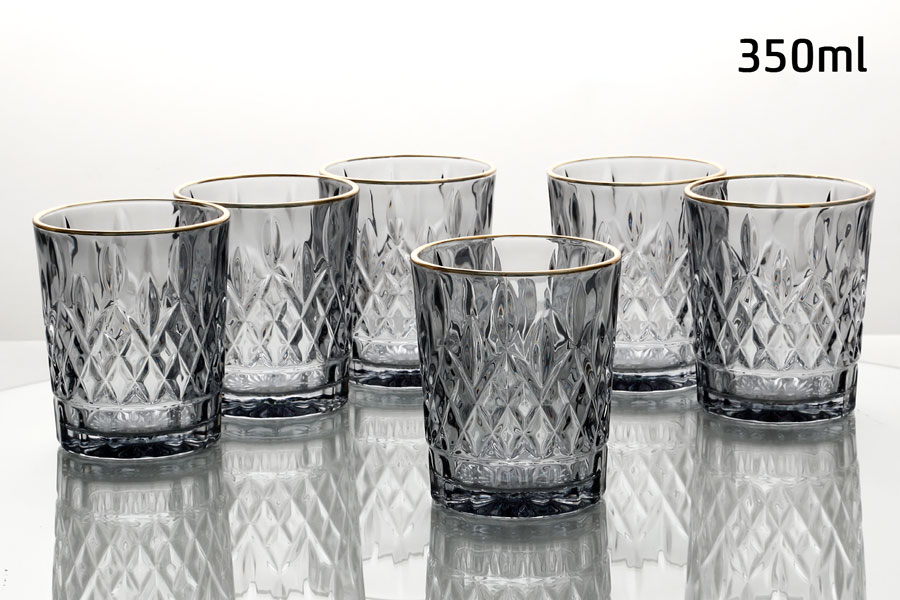 סט 6 כוסות וויסקי 350 מ”ל CRYSTALINE שחור פס זהב