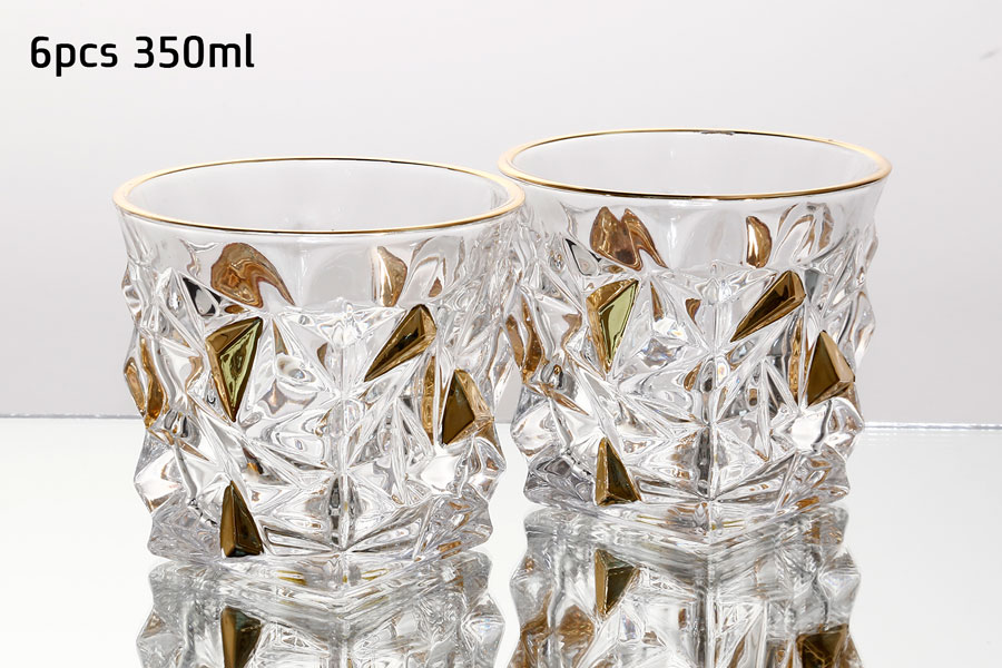 סט 6 כוסות וויסקי 350 מ”ל CRYSTANLINE פס זהב