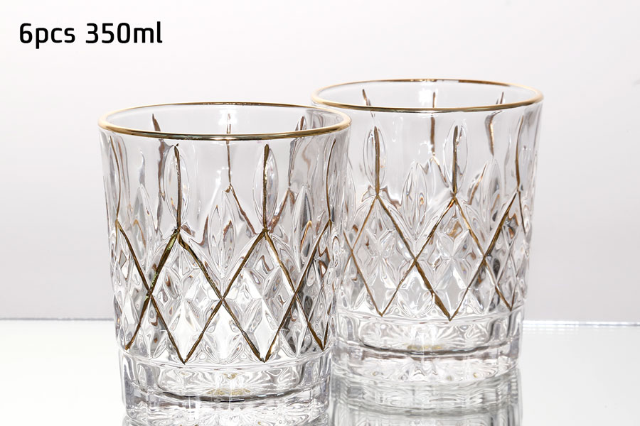 סט 6 כוסות וויסקי 350 מ”ל CRYSTANLINE פס זהב